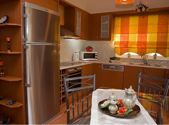 - A fully equipped kitchen with refrigerator and dining area