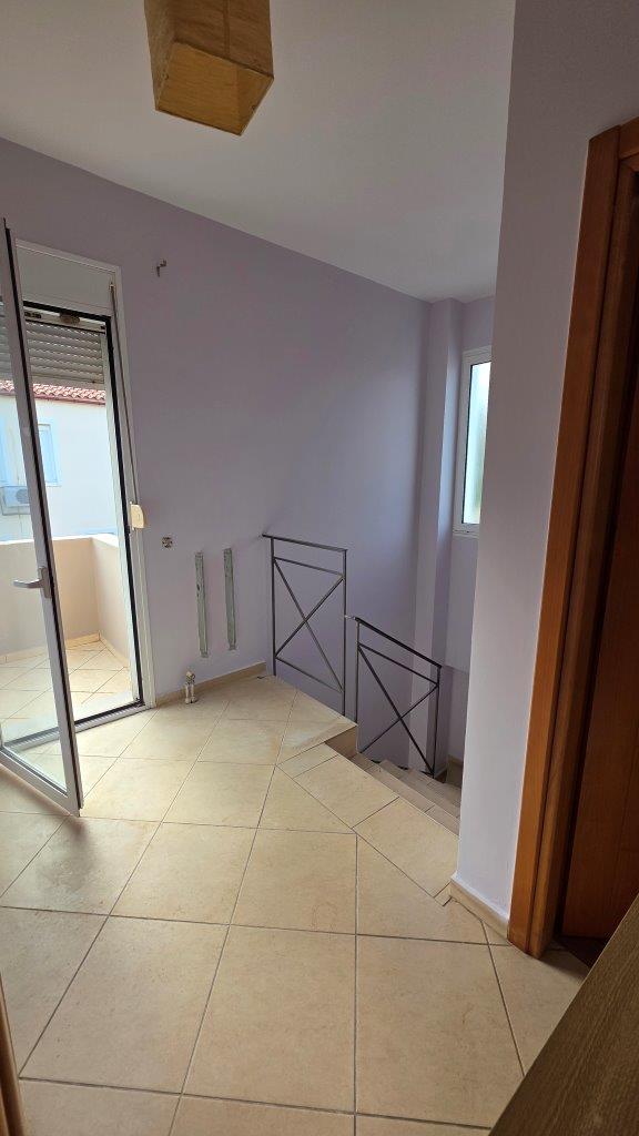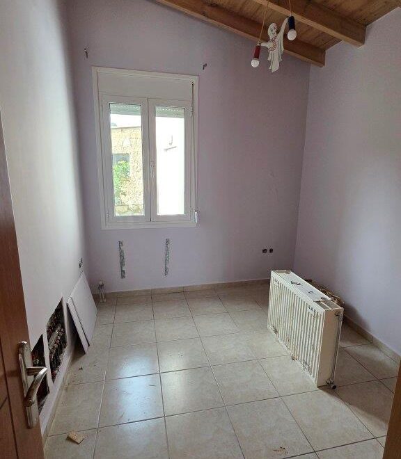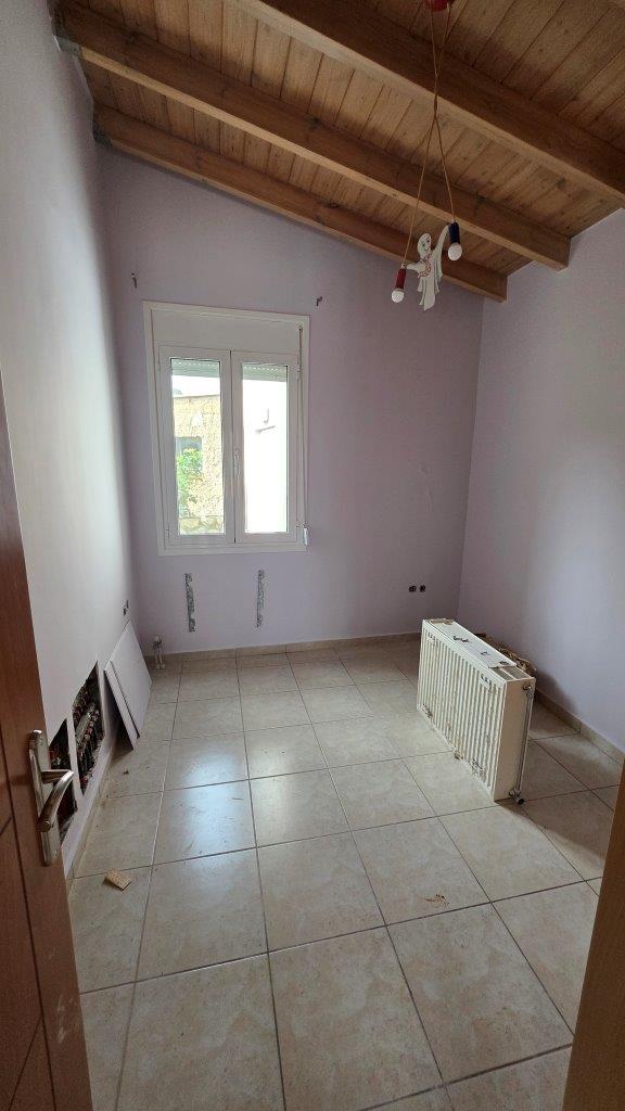 On the ground floor, the house consists of a spacious open-plan kitchen, living and dining area with a fireplace, creating a warm and inviting atmosphere. There is also one bedroom and one WC. The interior is highlighted by a beautiful wooden ceiling, adding character and a cozy feel to the space.