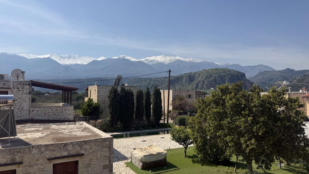 The villa is offering magnificent mountain views, the villa is also close to some of Crete’s most beautiful beaches—just 5 to 16 km from Kalyves, Almyrida, and Georgioupolis. Here, you can enjoy the tranquility of village life while being within easy reach of the island’s lively coastal lifestyle.